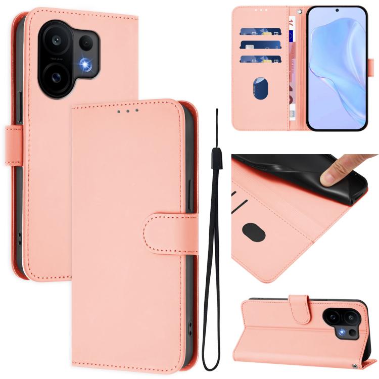 For vivo S30 Skin Feel Solid Color Leather Phone Case with Lanyard(Pink)