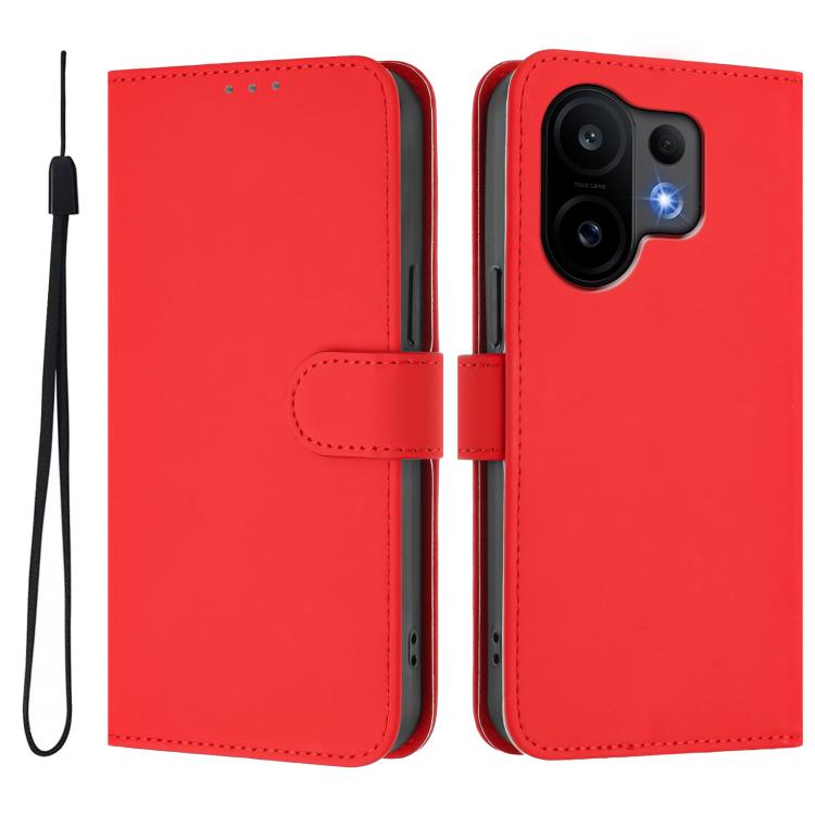 For vivo S30 Skin Feel Solid Color Leather Phone Case with Lanyard(Red)