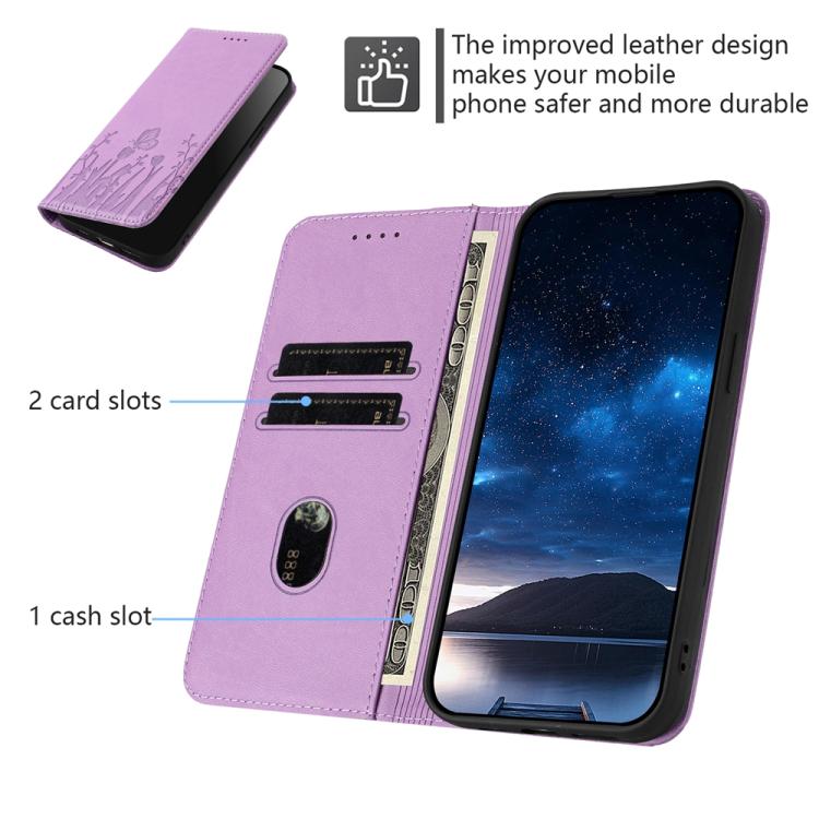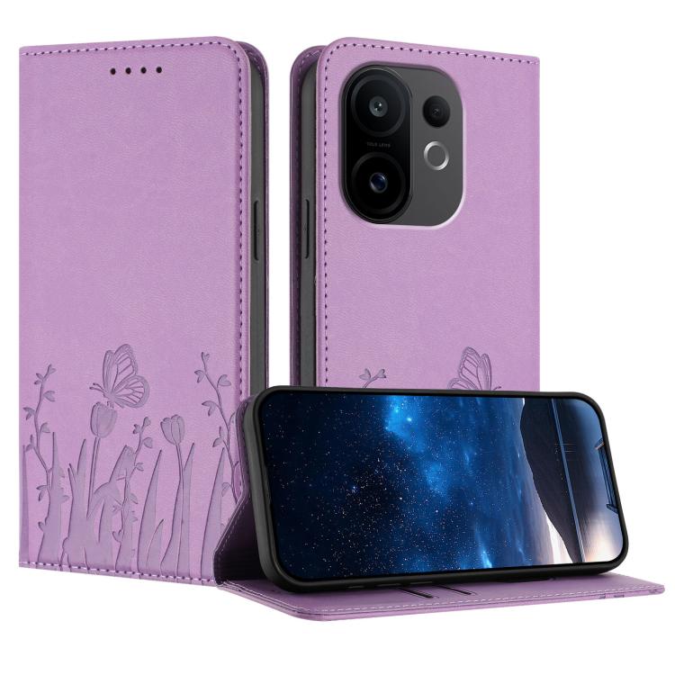 For vivo S30 Tulips Butterfly Pattern Magnetic Vegan Leather Phone Case(Light Purple)
