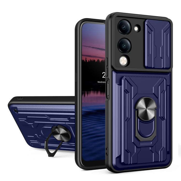 For vivo Y29s 5G / Y04 4G Sliding Camshield TPU+PC Phone Case with Card Slot(Blue)