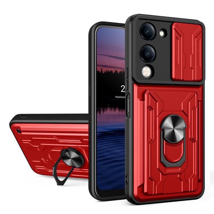 For vivo Y29s 5G / Y04 4G Sliding Camshield TPU+PC Phone Case with Card Slot(Red)
