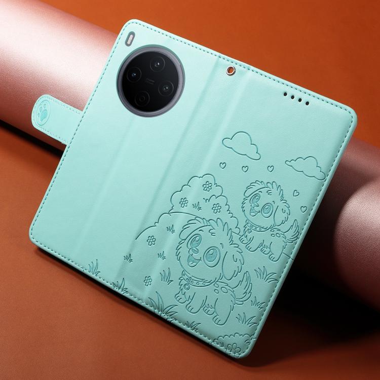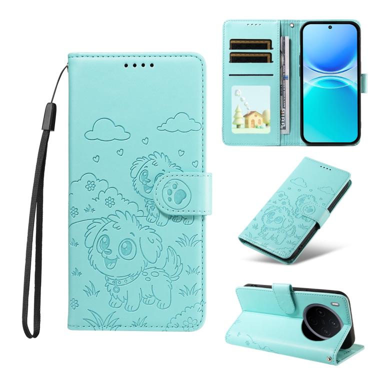 For vivo Y500 Pro 5G Embossed Heart Dog RFID Blocking Wallet Leather Phone Case(Green)