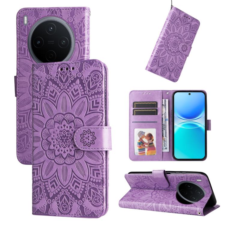 For vivo Y500 Pro 5G Embossed Sunflower Leather Phone Case(Purple)