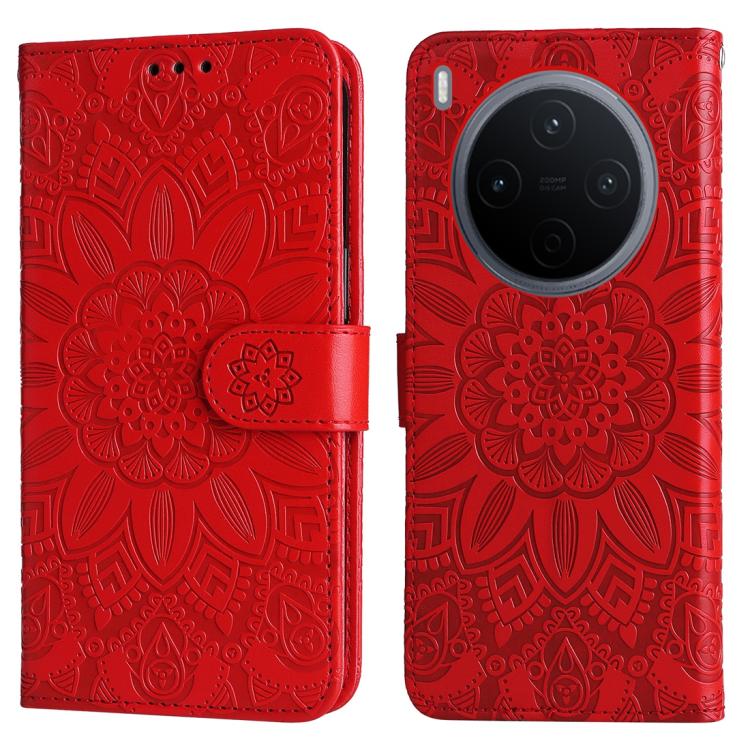 For vivo Y500 Pro 5G Embossed Sunflower Leather Phone Case(Red)