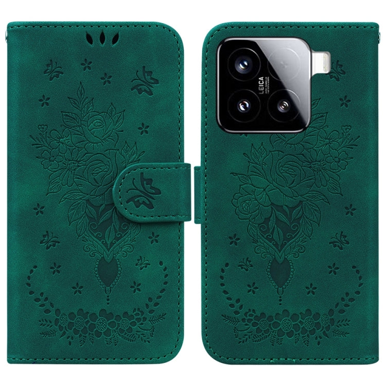 For Xiaomi 15 Butterfly Rose Embossed Leather Phone Case(Green)
