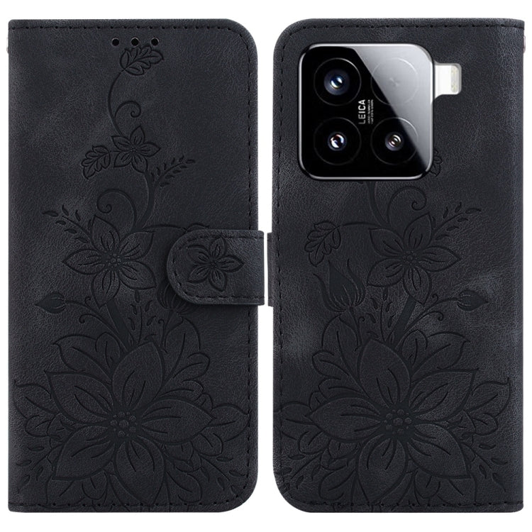For Xiaomi 15 Lily Embossed Leather Phone Case(Black)