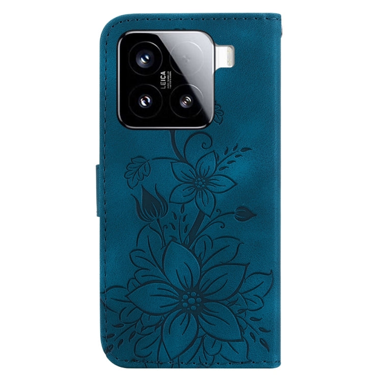For Xiaomi 15 Lily Embossed Leather Phone Case(Dark Blue)