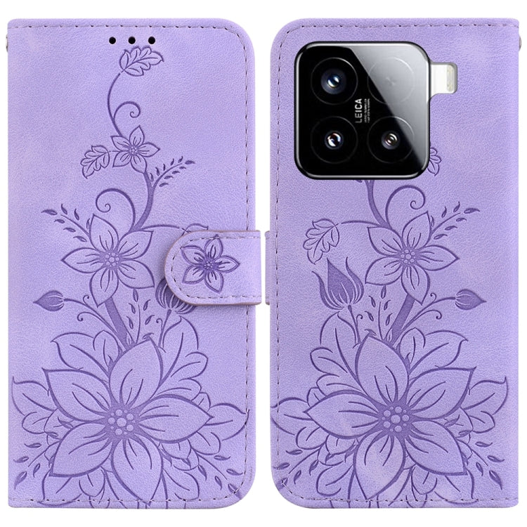 For Xiaomi 15 Lily Embossed Leather Phone Case(Purple)