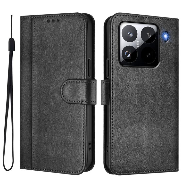 For Xiaomi 15 Pro Line Splicing Buckle Retro Leather Phone Case(Black)