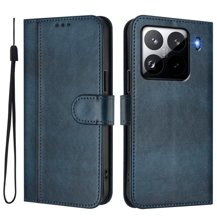 For Xiaomi 15 Pro Line Splicing Buckle Retro Leather Phone Case(Dark Blue)