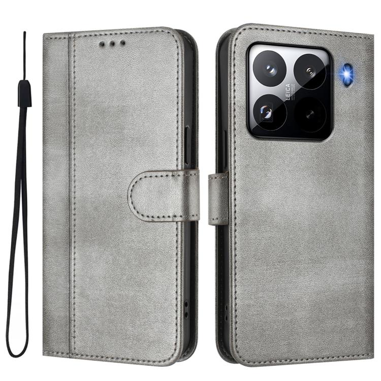 For Xiaomi 15 Pro Line Splicing Buckle Retro Leather Phone Case(Grey)