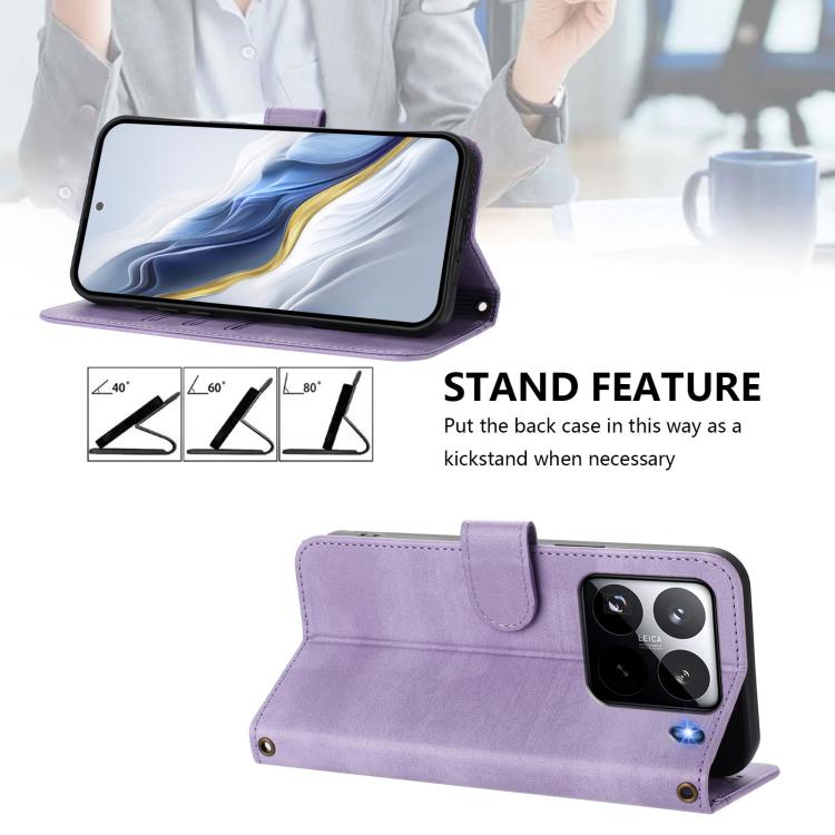 For Xiaomi 15 Pro Line Splicing Buckle Retro Leather Phone Case(Purple)
