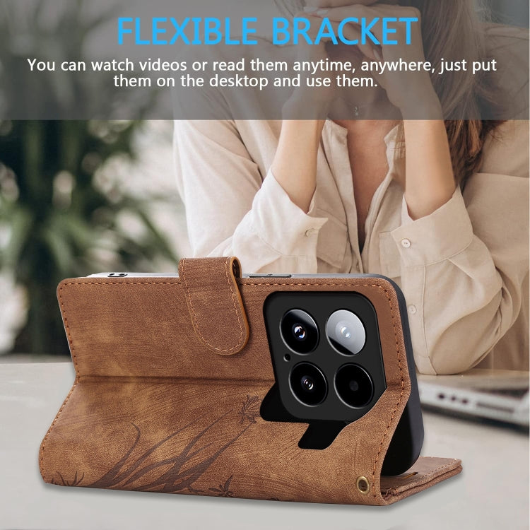 For Xiaomi 15 Pro Orchid Butterfly Embossed Leather Phone Case(Brown)