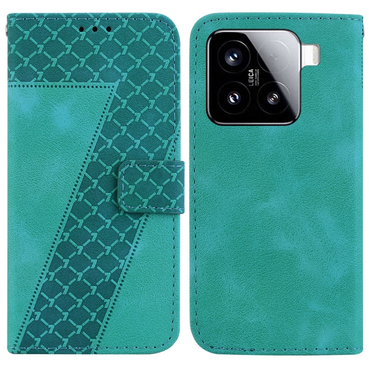 For Xiaomi 15 Seven-shaped Embossed Leather Phone Case(Green)