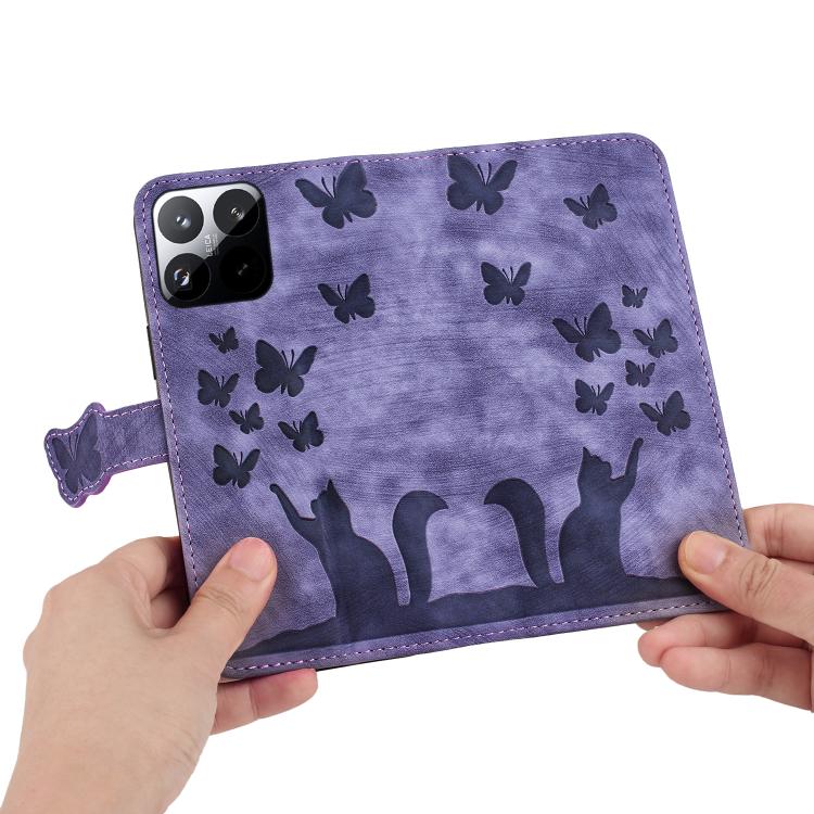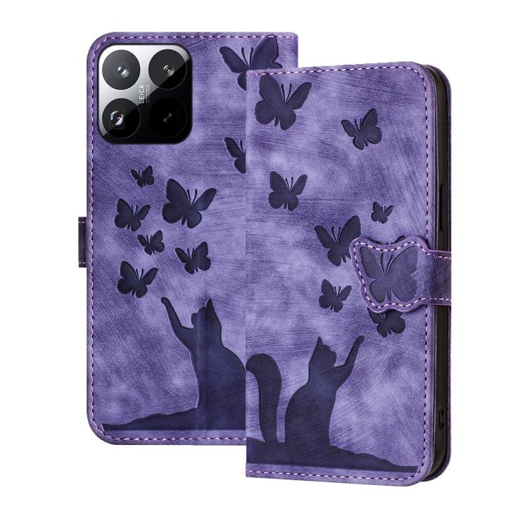 For Xiaomi 15T 5G Butterfly Cat Embossing Flip Leather Phone Case(Purple)