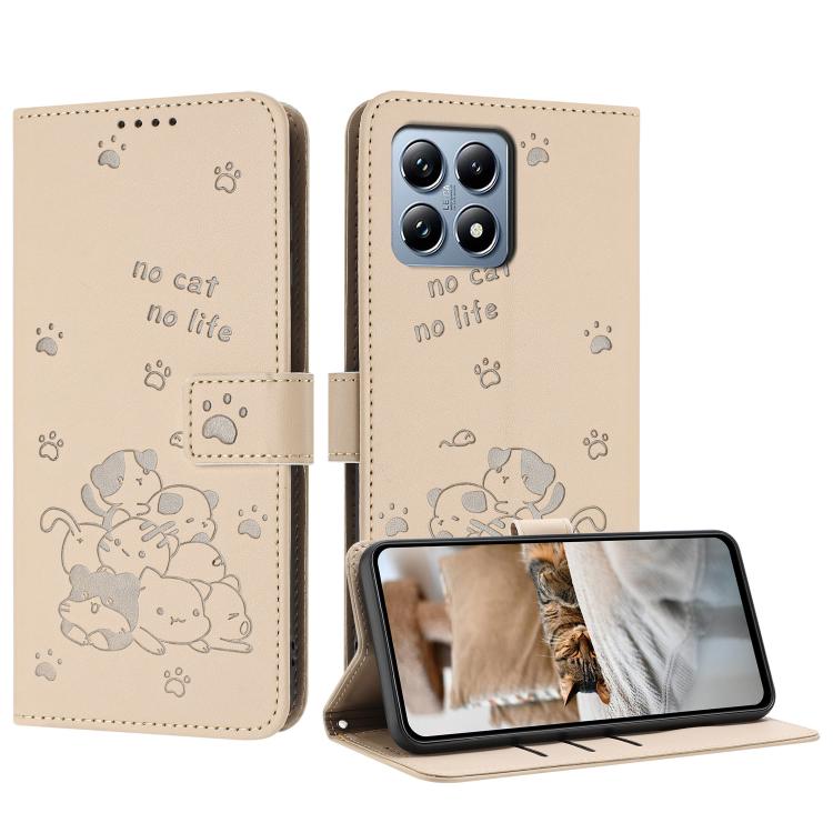 For Xiaomi 15T 5G Embossed Kitten Phone Leather Case with Lanyard(Beige)