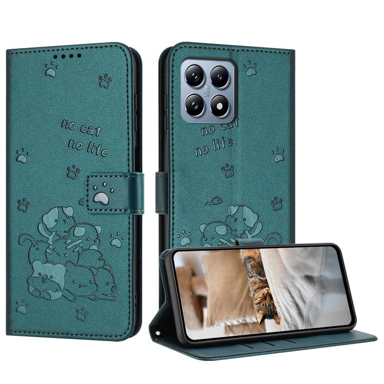 For Xiaomi 15T 5G Embossed Kitten Phone Leather Case with Lanyard(Dark Green)