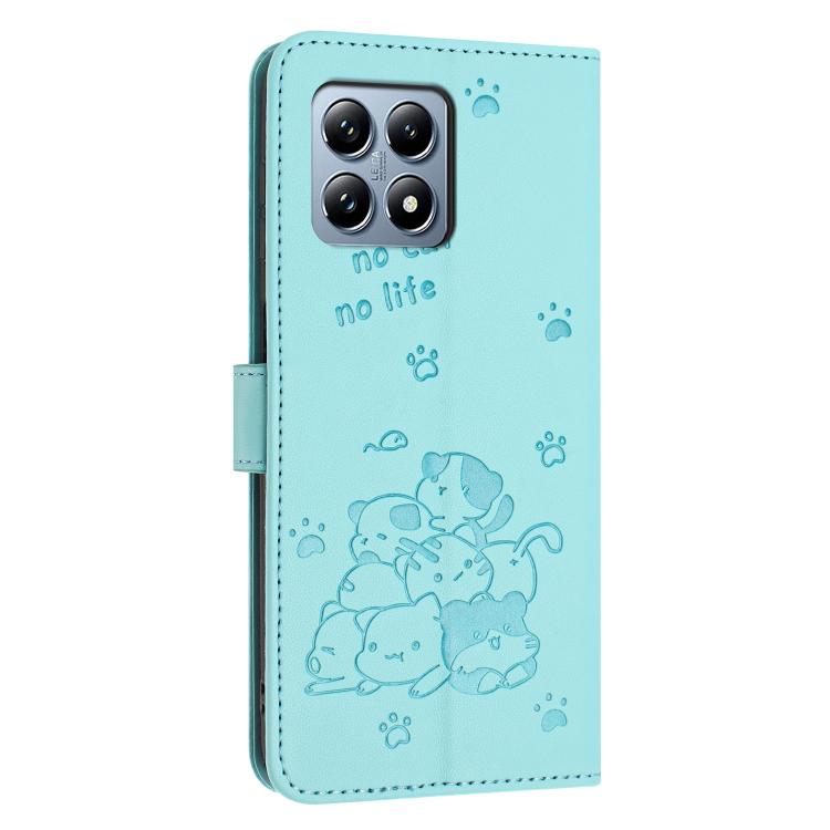 For Xiaomi 15T 5G Embossed Kitten Phone Leather Case with Lanyard(Mint Green)