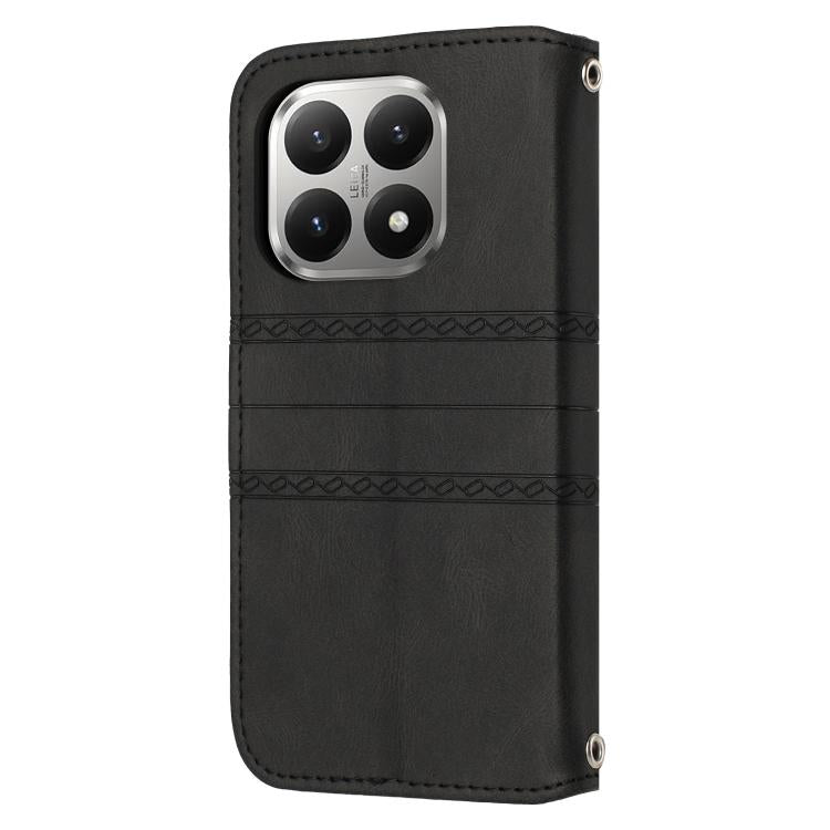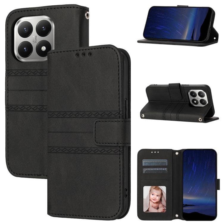 For Xiaomi 15T 5G Embossed Stripes Skin Feel Leather Phone Case(Black)