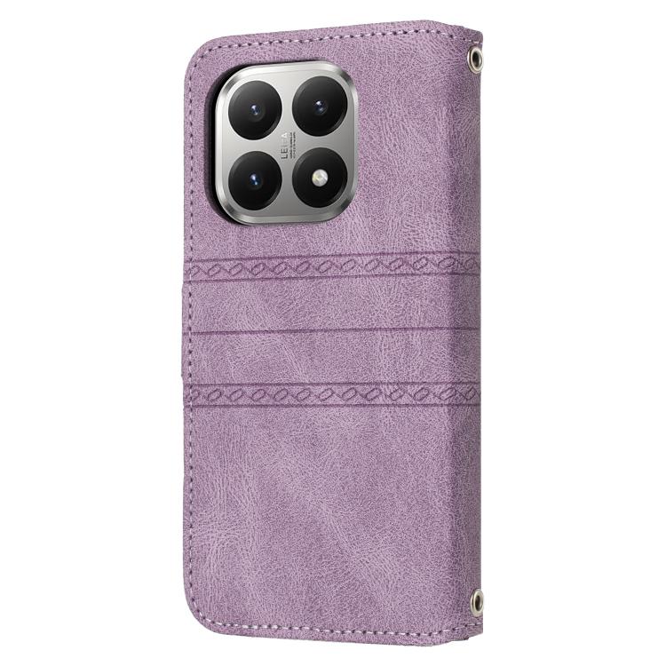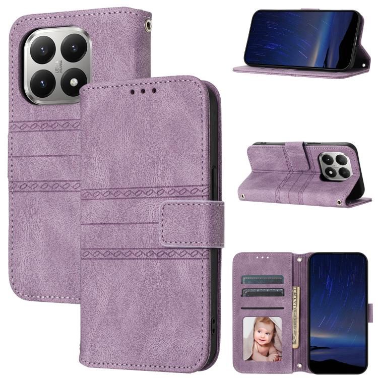 For Xiaomi 15T 5G Embossed Stripes Skin Feel Leather Phone Case(Light Purple)