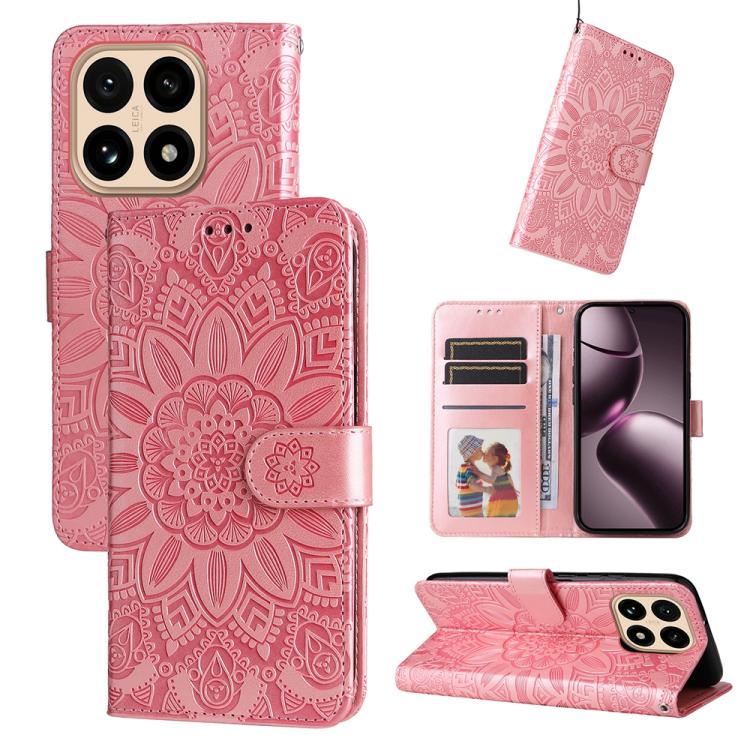 For Xiaomi 15T 5G Embossed Sunflower Leather Phone Case(Pink)