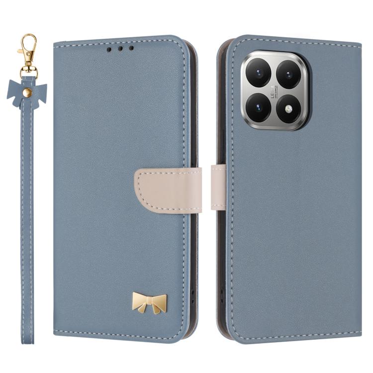 For Xiaomi 15T 5G Metal Bow Leather Phone Case with Hand Strap(Light Blue)
