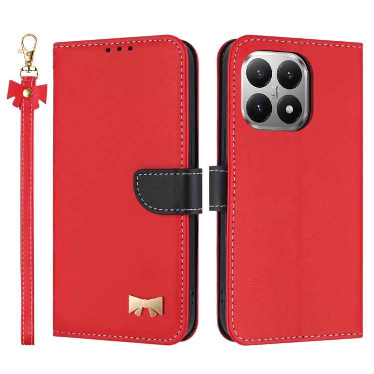 For Xiaomi 15T 5G Metal Bow Leather Phone Case with Hand Strap(Red)