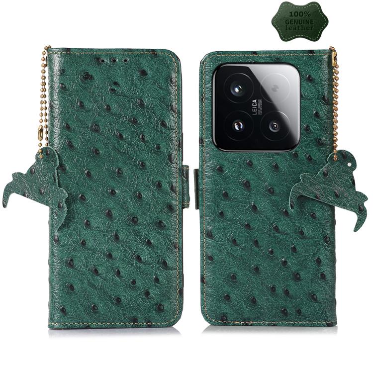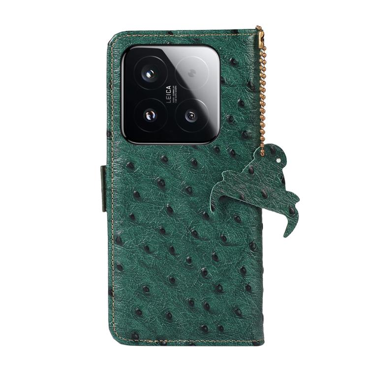 For Xiaomi 15T 5G Ostrich Pattern Genuine Leather RFID Phone Case(Green)
