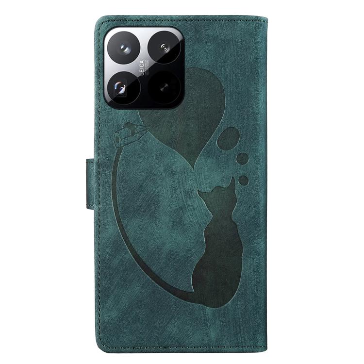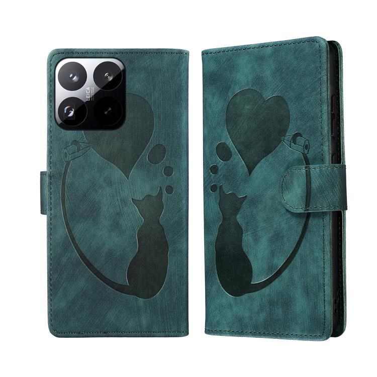 For Xiaomi 15T 5G Pen Heart Cat Embossed Leather Phone Case(Green)