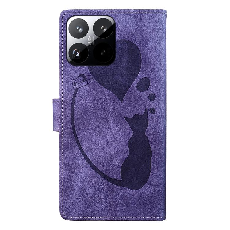 For Xiaomi 15T 5G Pen Heart Cat Embossed Leather Phone Case(Purple)