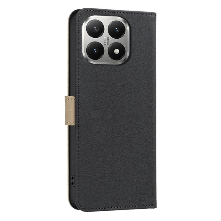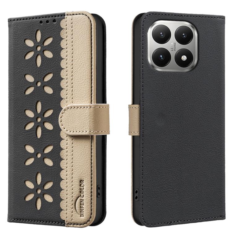 For Xiaomi 15T 5G Splicing Color Hollow Flower Pattern RFID Leather Phone Case(Black)