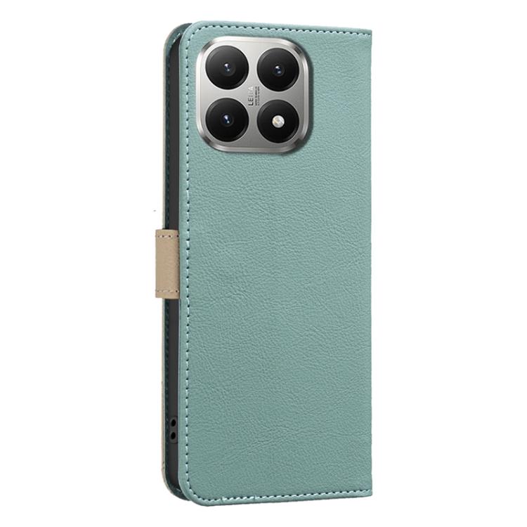 For Xiaomi 15T 5G Splicing Color Hollow Flower Pattern RFID Leather Phone Case(Green)