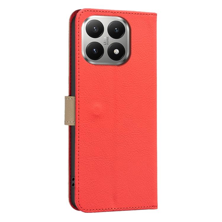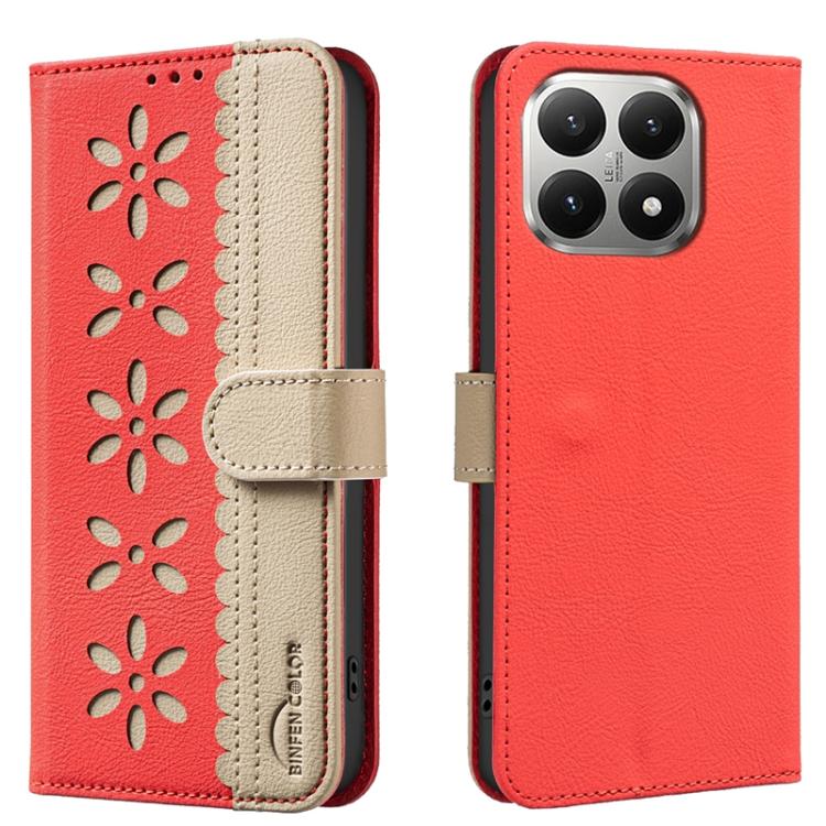 For Xiaomi 15T 5G Splicing Color Hollow Flower Pattern RFID Leather Phone Case(Red)