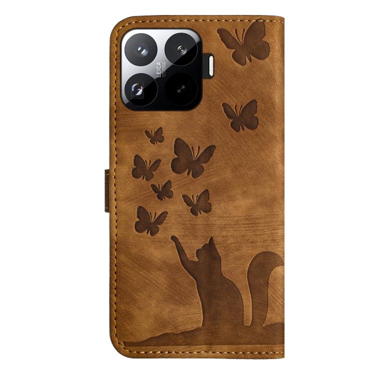 For Xiaomi 15T Pro 5G Butterfly Cat Embossing Flip Leather Phone Case(Brown)