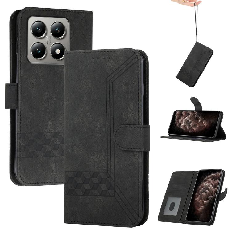 For Xiaomi 15T Pro 5G Cubic Skin Feel Flip Leather Phone Case(Black)