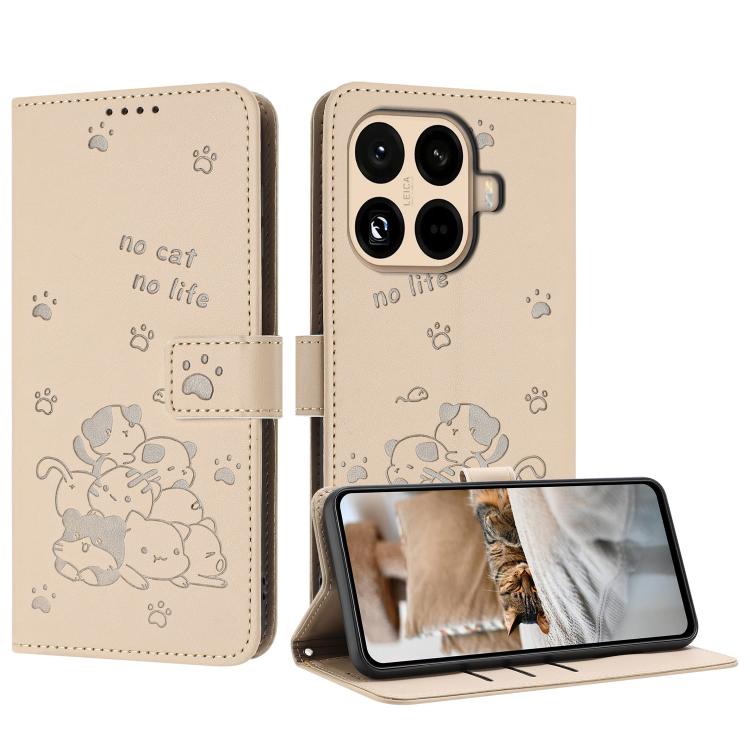 For Xiaomi 15T Pro 5G Embossed Kitten Phone Leather Case with Lanyard(Beige)