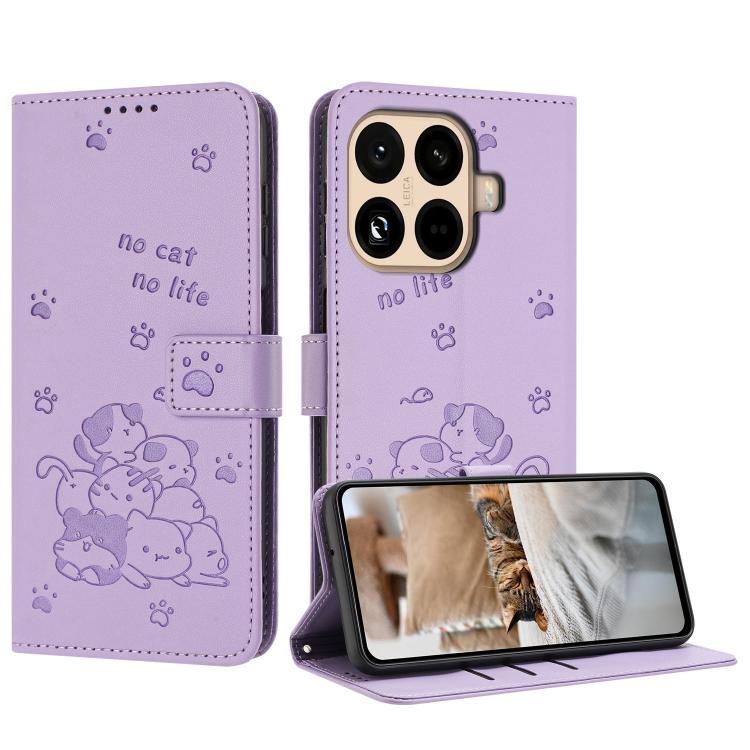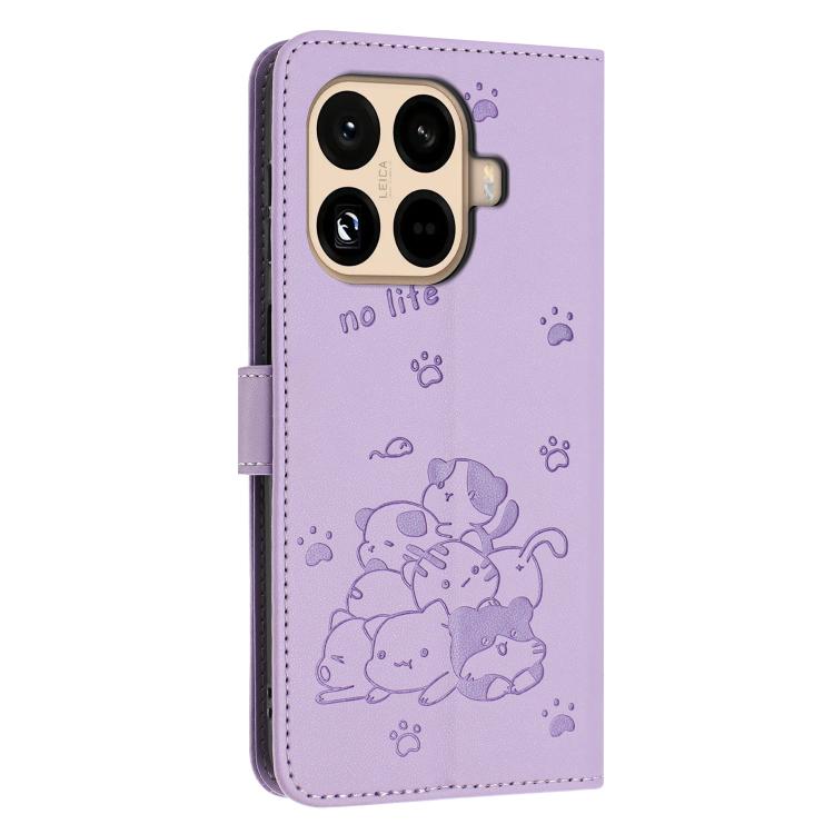 For Xiaomi 15T Pro 5G Embossed Kitten Phone Leather Case with Lanyard(Purple)