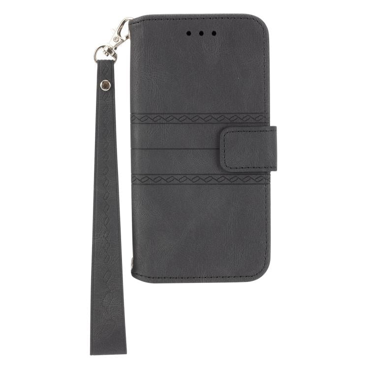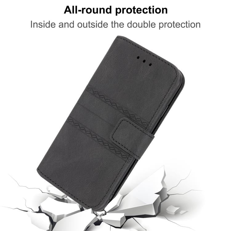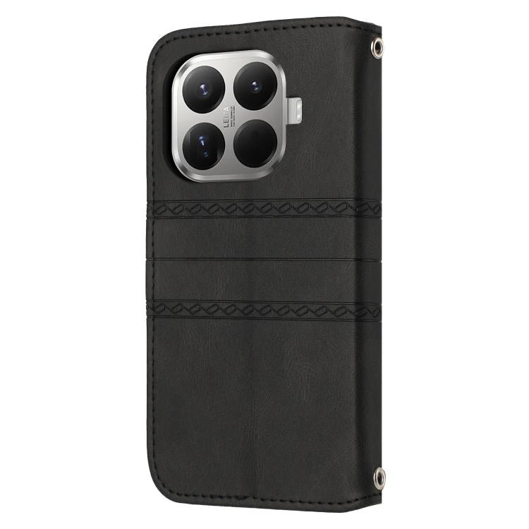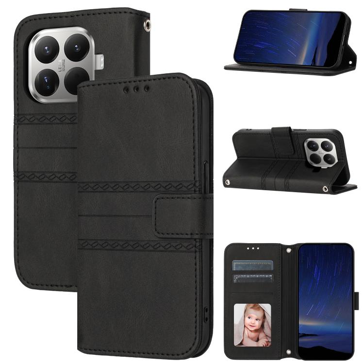 For Xiaomi 15T Pro 5G Embossed Stripes Skin Feel Leather Phone Case(Black)