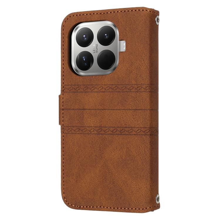 For Xiaomi 15T Pro 5G Embossed Stripes Skin Feel Leather Phone Case(Brown)