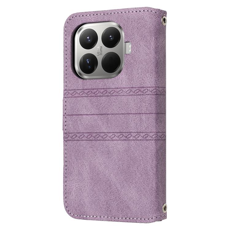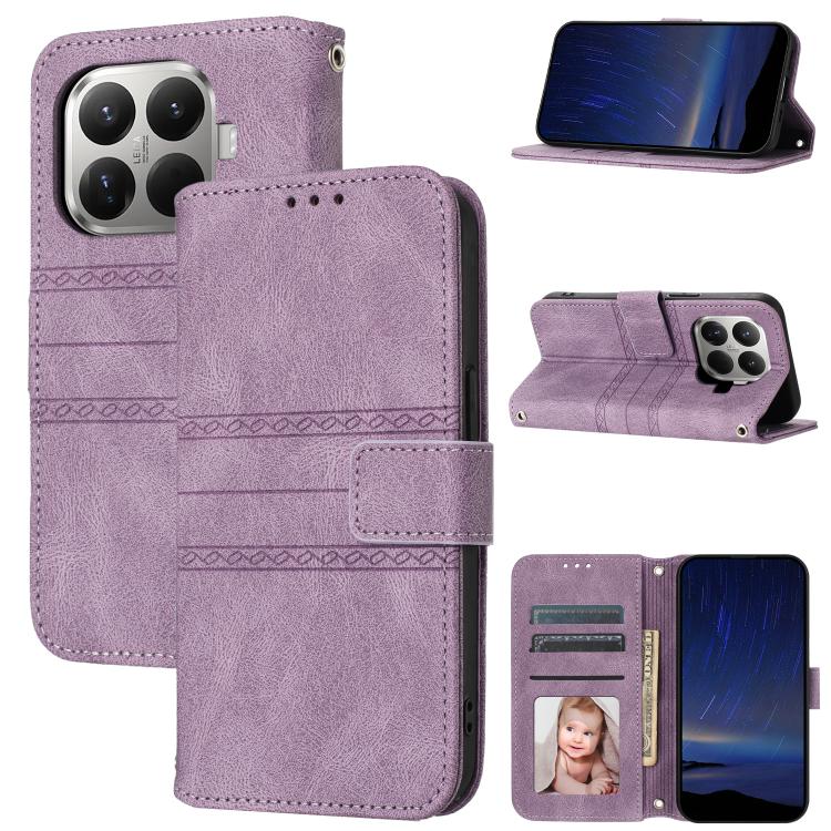 For Xiaomi 15T Pro 5G Embossed Stripes Skin Feel Leather Phone Case(Light Purple)