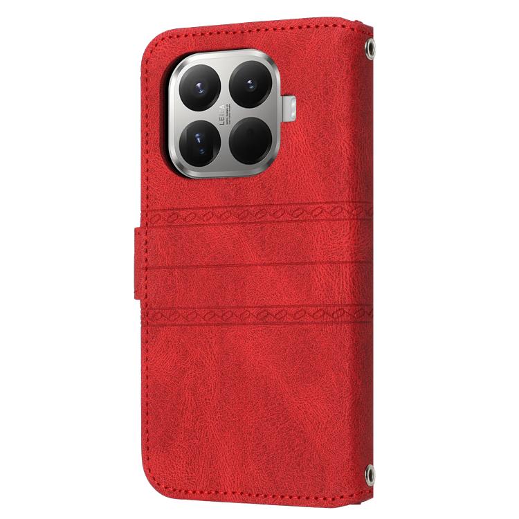 For Xiaomi 15T Pro 5G Embossed Stripes Skin Feel Leather Phone Case(Red)