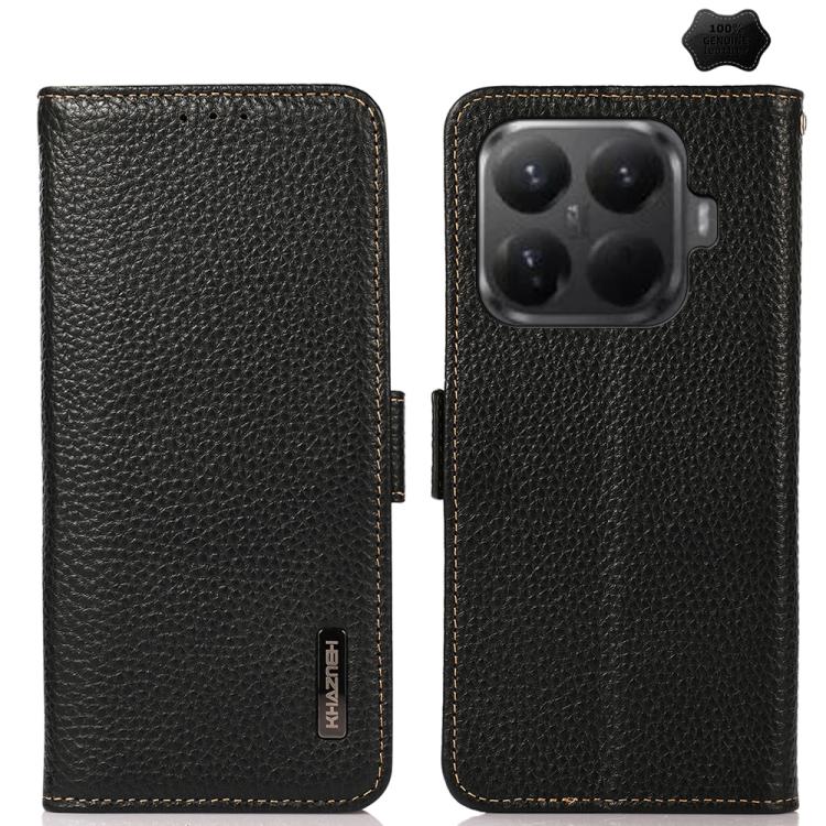 For Xiaomi 15T Pro 5G KHAZNEH Side-Magnetic Litchi Genuine Leather RFID Phone Case(Black)