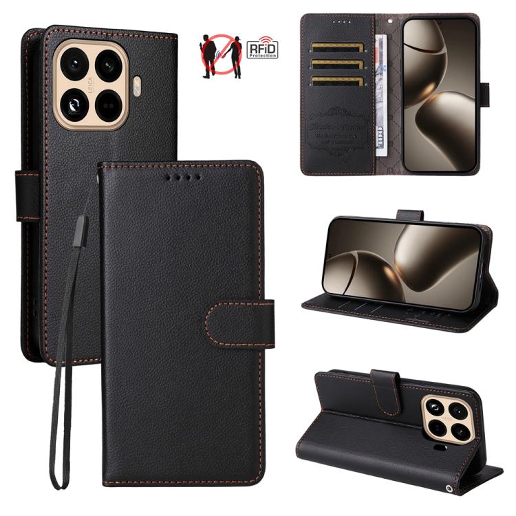 For Xiaomi 15T Pro 5G Litchi Texture RFID Blocking 3-Card Wallet Leather Phone Case(Black)