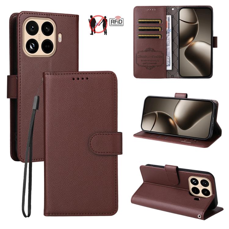 For Xiaomi 15T Pro 5G Litchi Texture RFID Blocking 3-Card Wallet Leather Phone Case(Brown)
