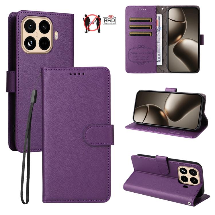 For Xiaomi 15T Pro 5G Litchi Texture RFID Blocking 3-Card Wallet Leather Phone Case(Purple)