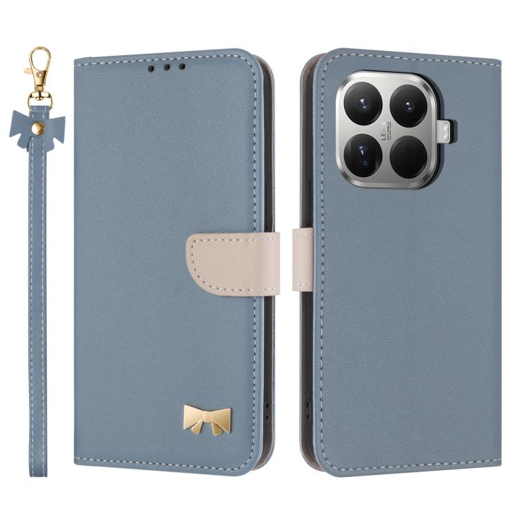 For Xiaomi 15T Pro 5G Metal Bow Leather Phone Case with Hand Strap(Light Blue)