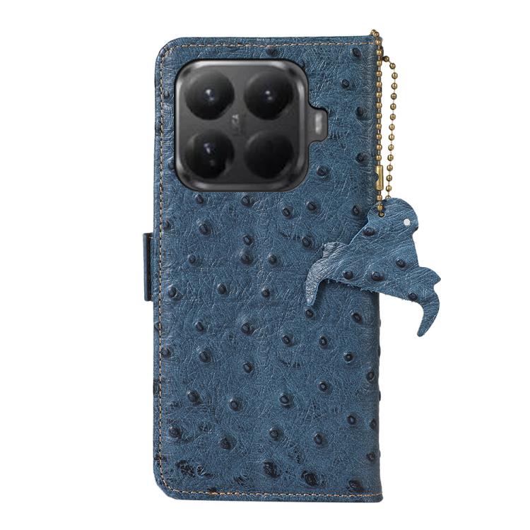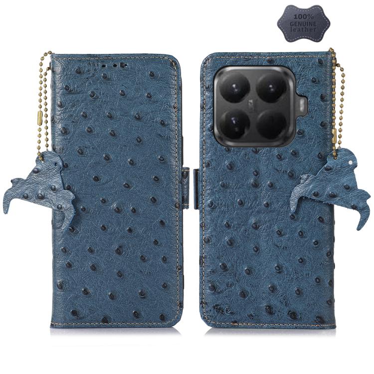 For Xiaomi 15T Pro 5G Ostrich Pattern Genuine Leather RFID Phone Case(Blue)