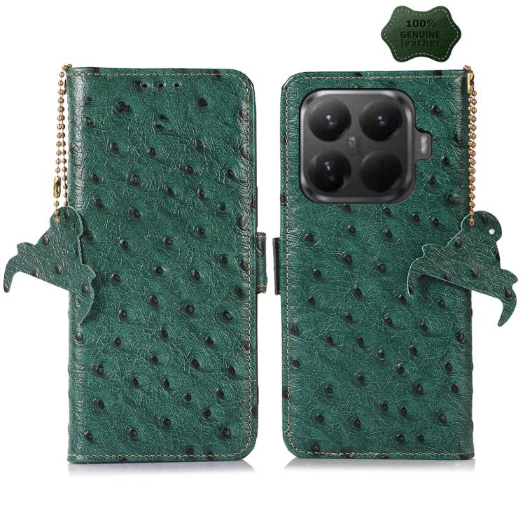 For Xiaomi 15T Pro 5G Ostrich Pattern Genuine Leather RFID Phone Case(Green)