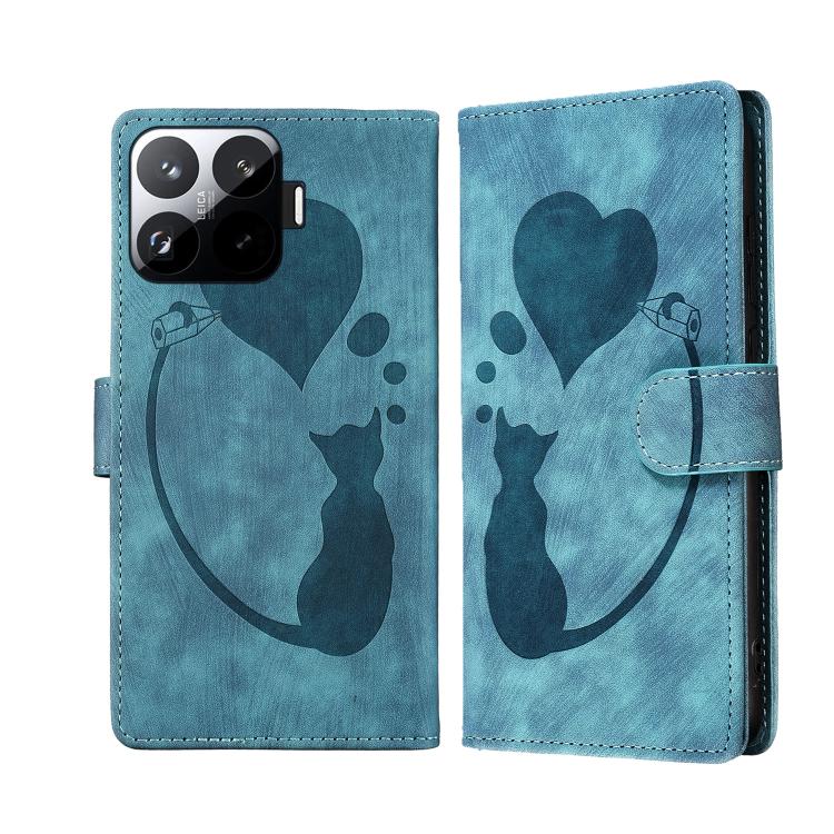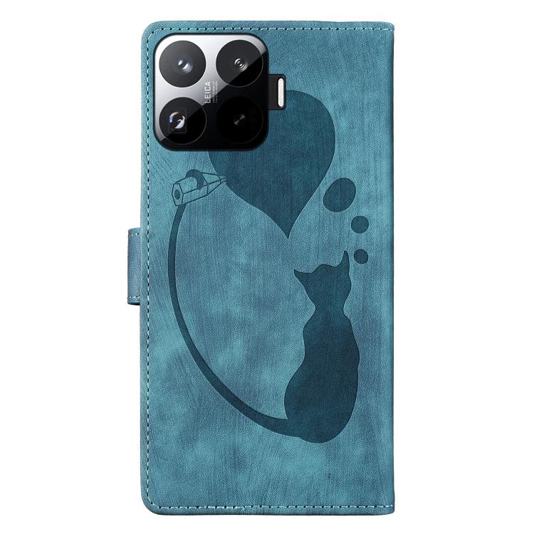 For Xiaomi 15T Pro 5G Pen Heart Cat Embossed Leather Phone Case(Blue)