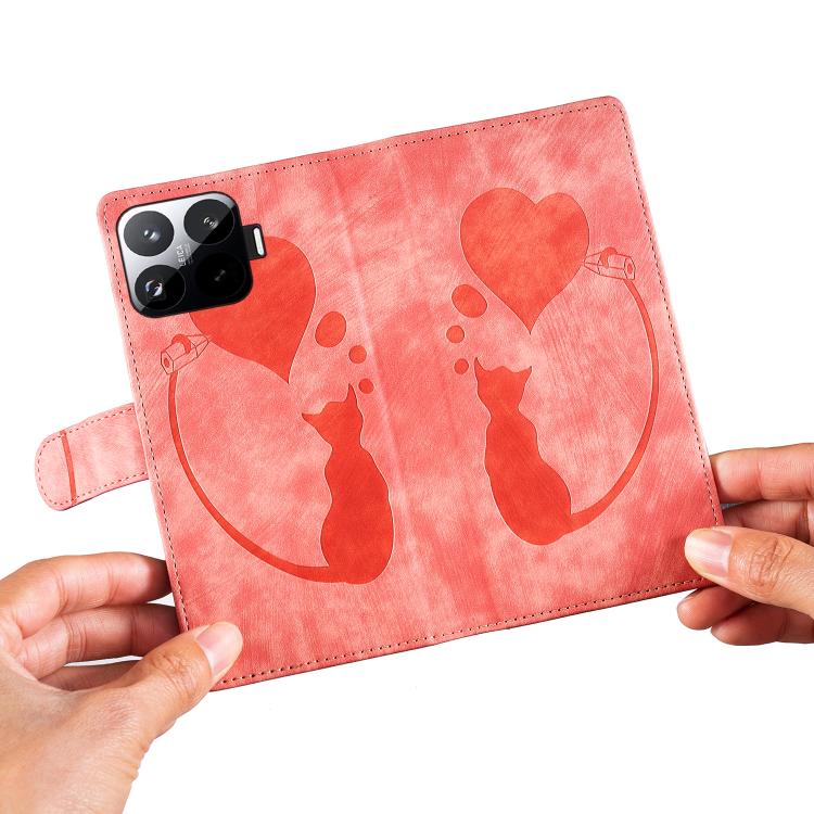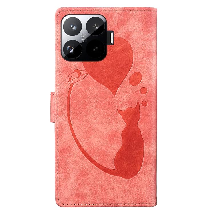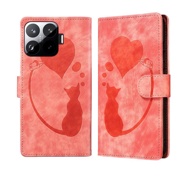 For Xiaomi 15T Pro 5G Pen Heart Cat Embossed Leather Phone Case(Orange)